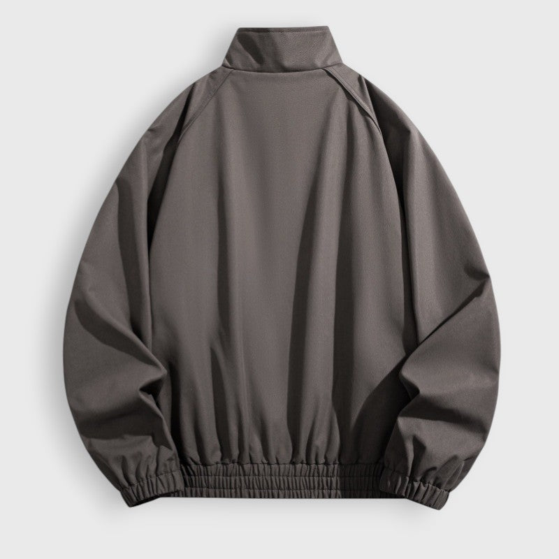 This men's stand collar jacket gives you a clean, structured look with a relaxed, roomy fit. A full-zip front, secure pockets, and a smooth woven shell make it ready for daily wear in black, brown, camel, gray green, and coffee.