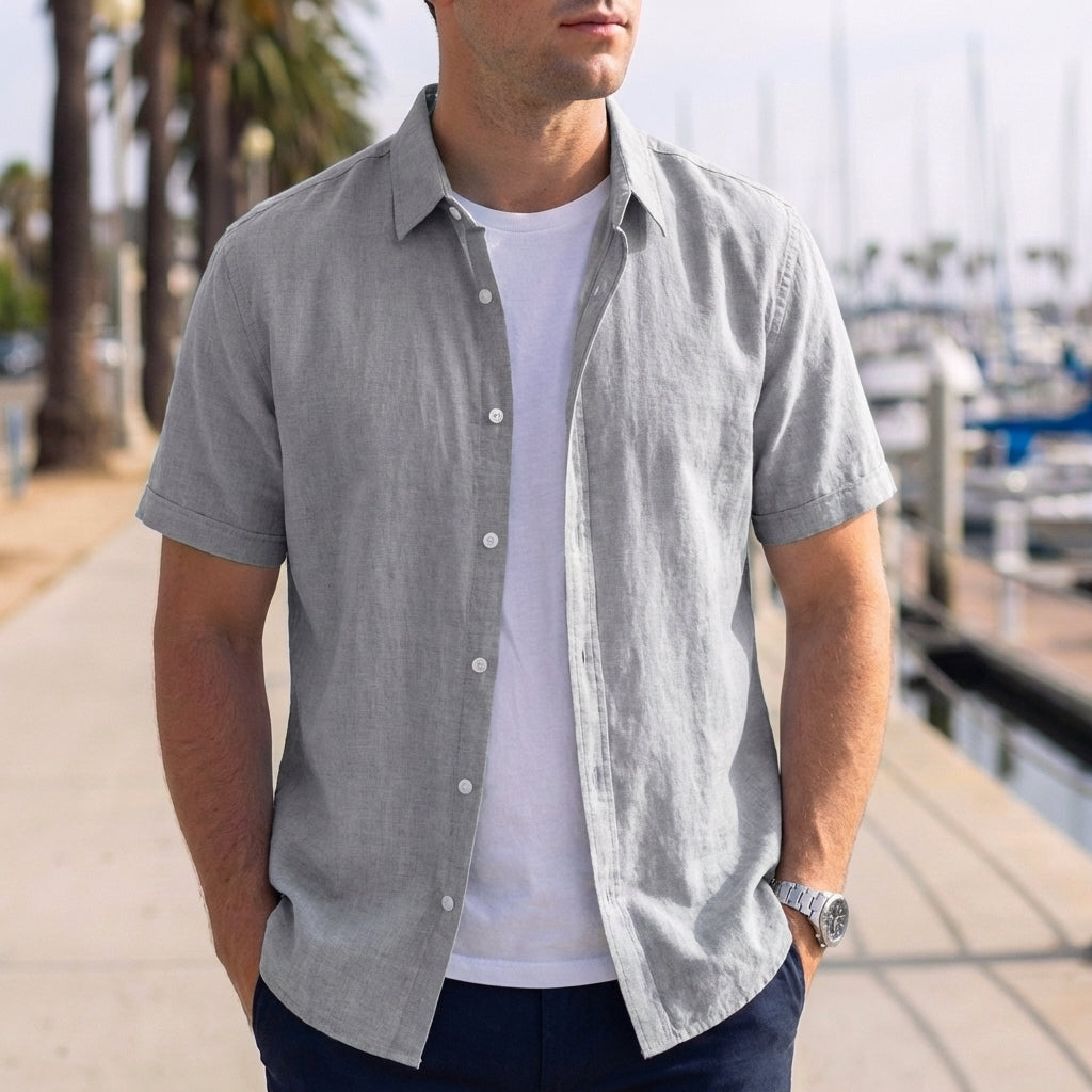 Introducing the Relaxed Fit Collared Button-Up Shirt, the perfect blend of style and comfort. Designed for men who value ease and a refined casual look, this collared, short-sleeve shirt with a relaxed fit will enhance your wardrobe while providing optimal comfort for any casual occasion.