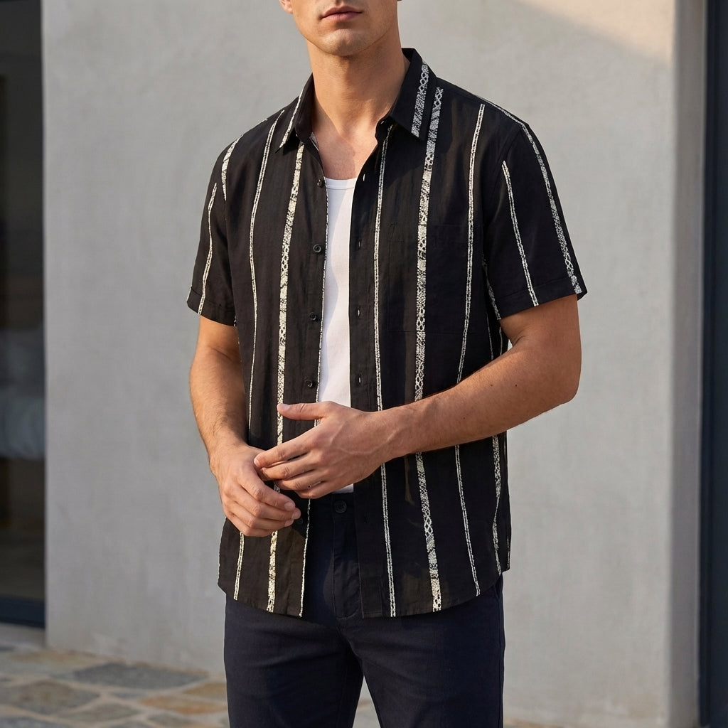 With its relaxed fit and versatile striped design, this shirt is ideal for casual outings, from weekend brunches to evening strolls. Its effortless style makes it an ideal choice for everyday wear, easily paired with shorts or chinos.