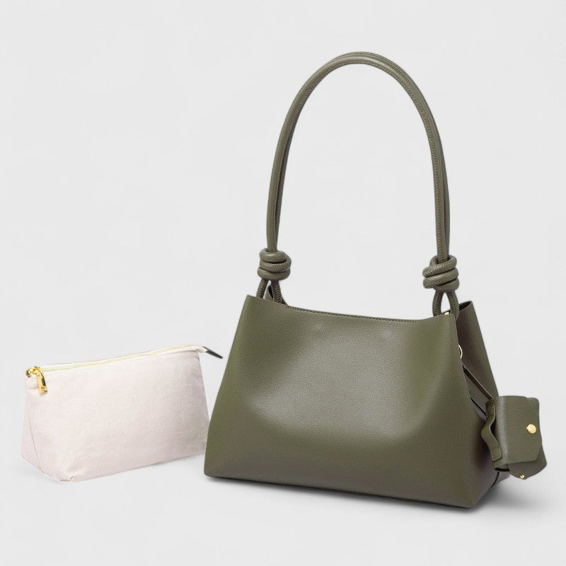 Crafted from supple two-layer cowhide, this medium shoulder bag pairs a soft top handle with a secure magnetic snap for polished everyday carry. A matching mini pouch keeps keys and cards organized, while the clean silhouette comes in rich green or classic black.