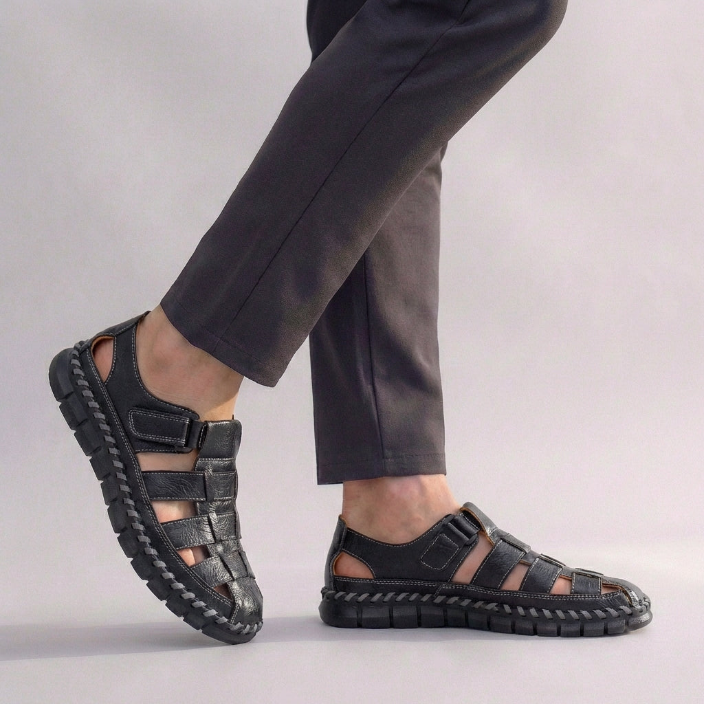 Explore the Comfort of Strappy Buckle Closed Toe Leather Fisherman Sandals for Men – Orthopedic Comfort & Support